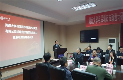 陳政清院士對湖南大學與我司簽訂戰略合作協議前景表示看好,對陳董事長受聘為湖南大學兼職教授表示衷心祝賀。他指出,湖南大學土木類學科和深圳市政院業務是對口的,全面對接,可以說是“門當戶對”;湖大與深圳市政院有很深的歷史淵源,如在科研方面,深圳市政院與湖大杰出校友王用中設計大師、聶建國院士有多年的深入合作,希望雙方后續一定要把戰略合作落地生根,早日開花結果。