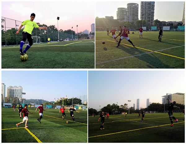 下午16:30,隨著裁判員的一聲哨響,體育月的首場足球比賽在香蜜湖群眾體育公園精彩開賽。首個比賽日A、B兩個小組4場比賽同時開賽,比賽剛開始階段,首發球員個個精神抖擻,根據賽前的部署,踢得非常有針對性。隨著比賽的推進,在熟悉了對手的打法之后,對陣雙方開始加快節奏,運球盡在掌握中。通過嫻熟的配合完成精彩的進攻,又通過嚴密的團隊協作打出漂亮的防守,化解賽況危機于無形之中。雙方你來我往,場面精彩紛呈。場下的啦啦隊則在一旁為各自團隊瘋狂打call。