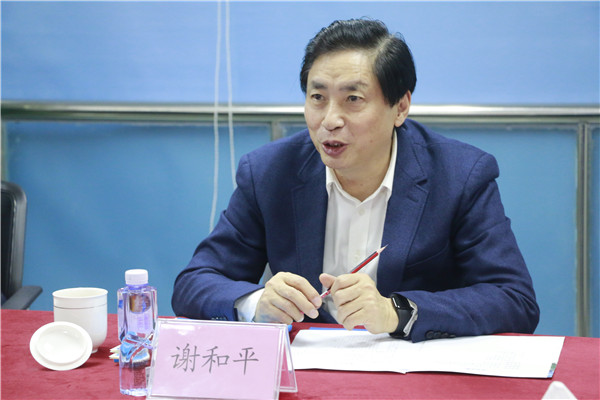 陳宜言大師向謝和平院士一行表示熱烈歡迎,并介紹了我公司近年來在加強人才建設、加大科研發(fā)展的舉措及校企合作方面的相關情況。他表示,希望雙方能夠就人才交流、科研項目等方面開展緊密的技術合作,實現(xiàn)共贏發(fā)展。蔡明總經理簡要介紹了我公司的業(yè)務板塊、資質分類、組織架構以及人員配置等基本情況。