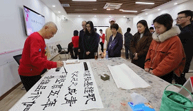 一入會(huì)場(chǎng),便感受到四溢的濃濃墨香。四位老師揮毫潑墨,書畫傳情,用自己的作品傳達(dá)了對(duì)市政院新一年的祝福以及對(duì)廣大青年員工成長成才的期盼。厚重的翰墨與飛揚(yáng)的青春在這里碰撞交融,在場(chǎng)青年員工們興致盎然,細(xì)品書畫之美,驚嘆各位書畫家的藝術(shù)水平,爭相與在場(chǎng)老師們交流,現(xiàn)場(chǎng)不時(shí)掌聲連連。
