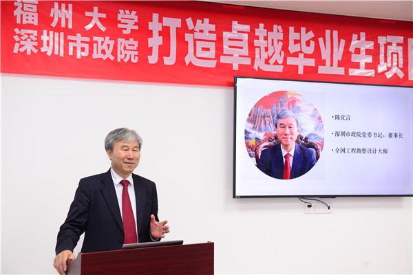 2019年2月23日,我公司與福州大學(xué)校企合作打造卓越畢業(yè)生項(xiàng)目啟動儀式在陳宜言設(shè)計(jì)大師福州大學(xué)工作室舉行。******福州大學(xué)委員會常委、副校長張星,兩辦主任林鍵,土木工程學(xué)院黨委書記黃培明,土木工程學(xué)院副院長張挺,數(shù)名專業(yè)學(xué)科教授以及福州大學(xué)14名本科生、碩士生代表,我公司黨委書記、董事長、全國工程勘察設(shè)計(jì)大師陳宜言,副總經(jīng)理張健君,相關(guān)部門負(fù)責(zé)人及多名企業(yè)項(xiàng)目導(dǎo)師共40余人參加了啟動儀式。