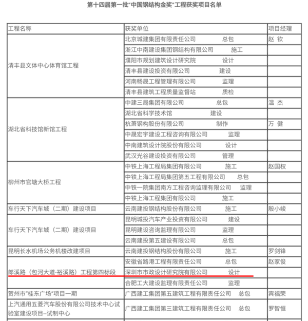 第十四屆第一批“中國鋼結(jié)構(gòu)金獎”工程獲獎項目名單