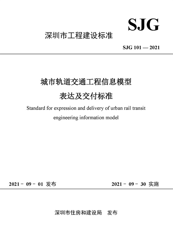 9月1日,深圳市政院與深鐵建設(shè)牽頭編制的《城市軌道交通工程信息模型表達及交付標準》(SJG 101-2021)、《城市軌道交通工程信息模型分類和編碼標準》(SJG 102-2021)兩本地方標準正式發(fā)布,自2021年9月30日起生效實施。