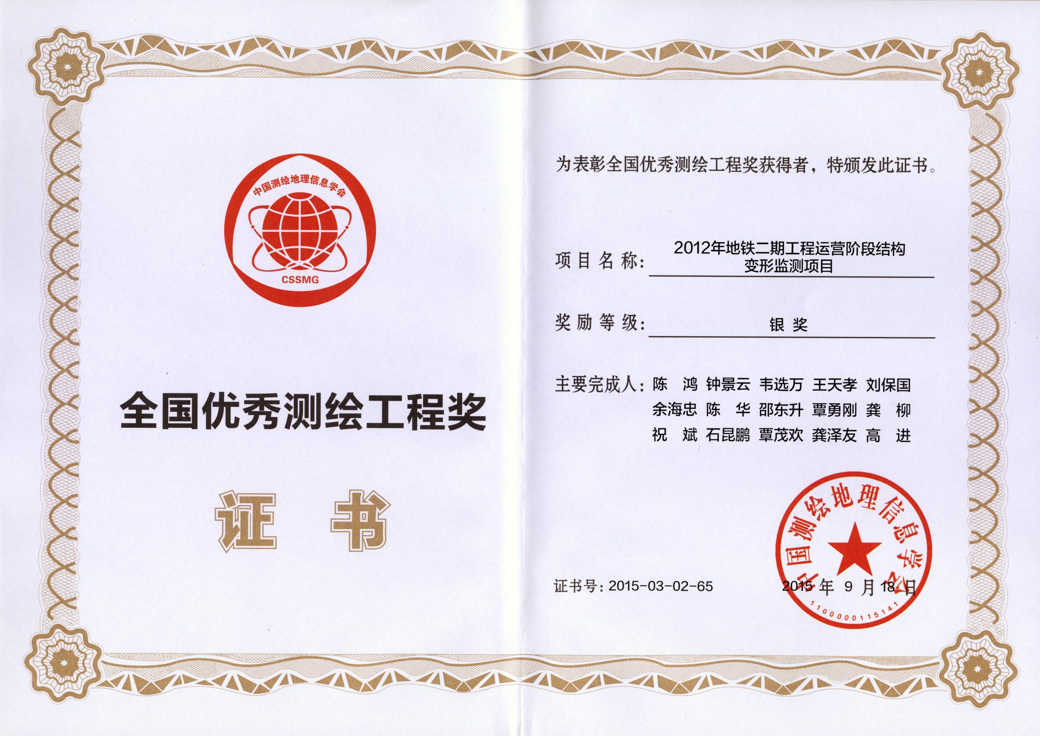 2012年地鐵二期工程運營階段結構變形監測項目